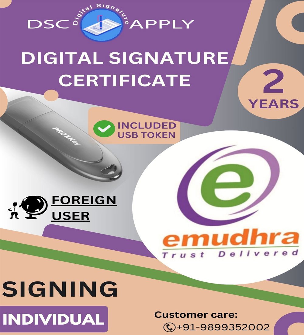 eMudhra Class 3 Individual Foreign Signing DSC For 2 Years With Token