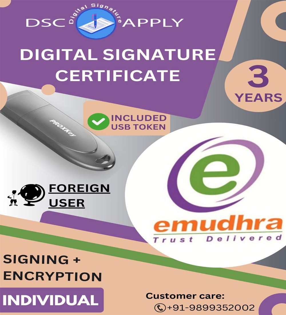 eMudhra Class 3 Individual Foreign Combo DSC Signing And Encryption For 3 Years With Token
